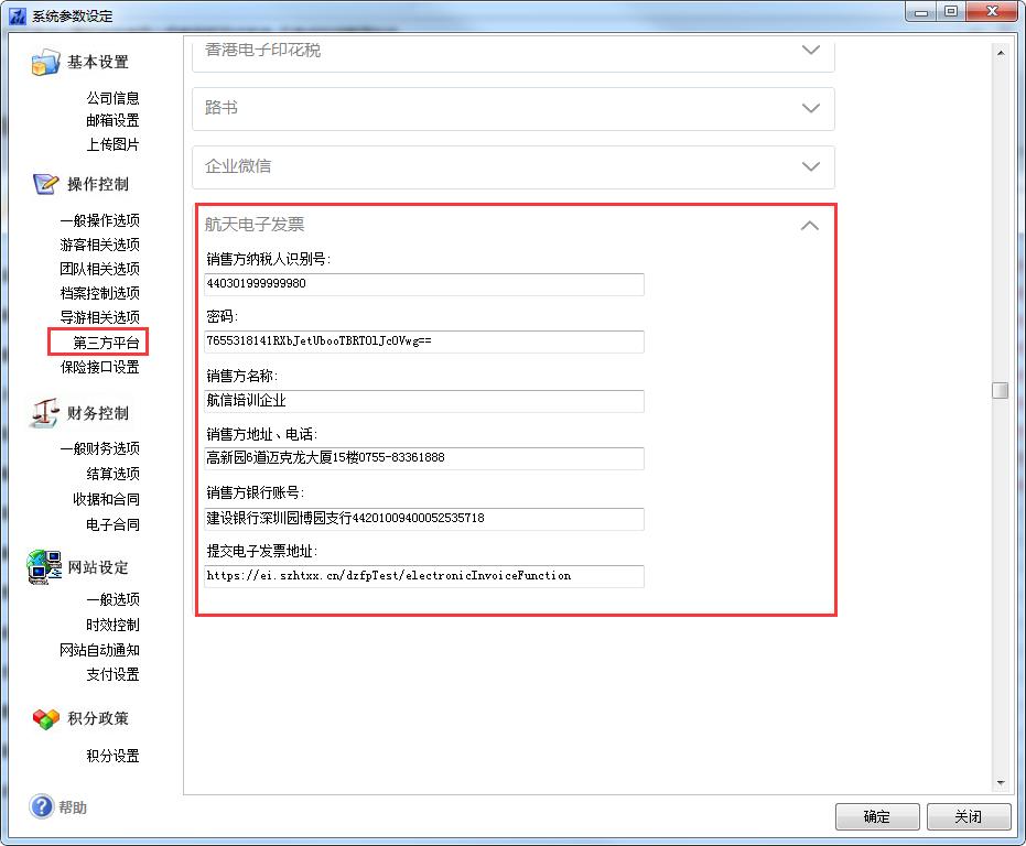 1、設置航天電子發票的系統參數