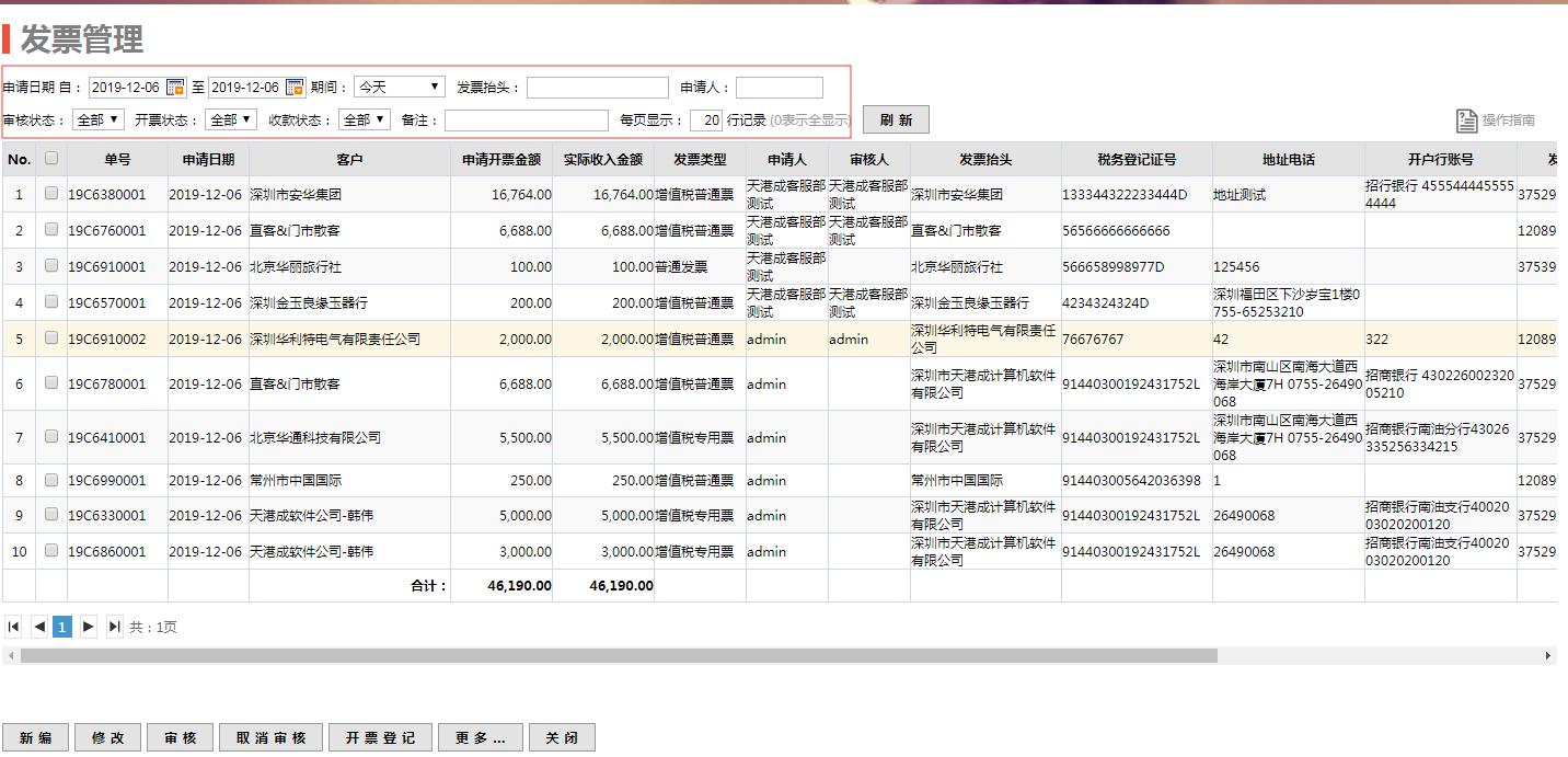 進入路徑:財務-收款-發票管理