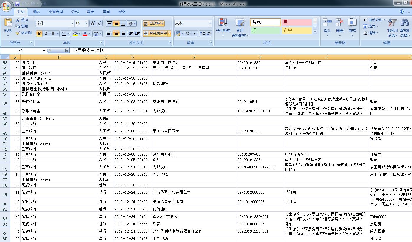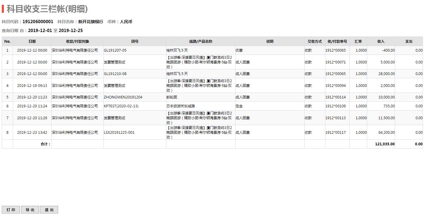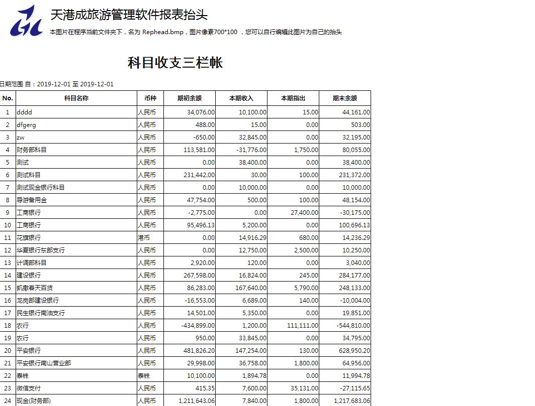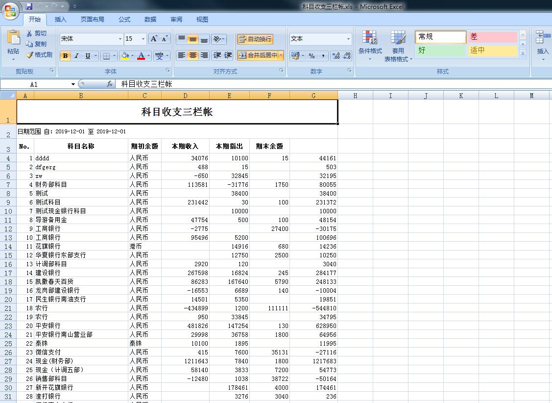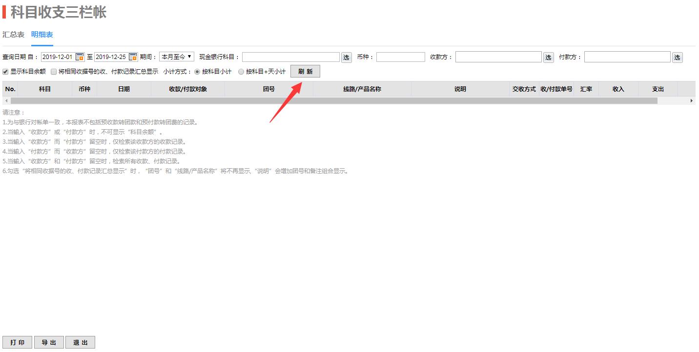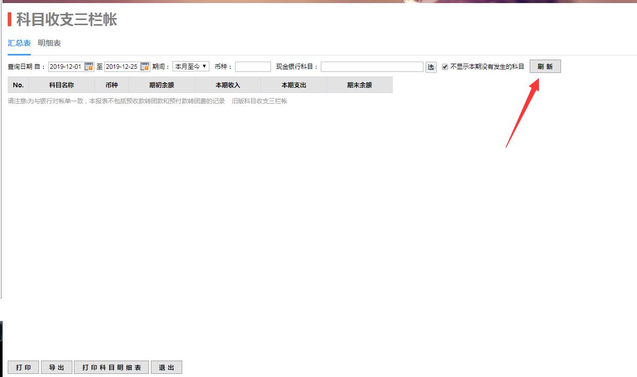 進入路徑:財務-賬戶管理-科目收支三欄賬