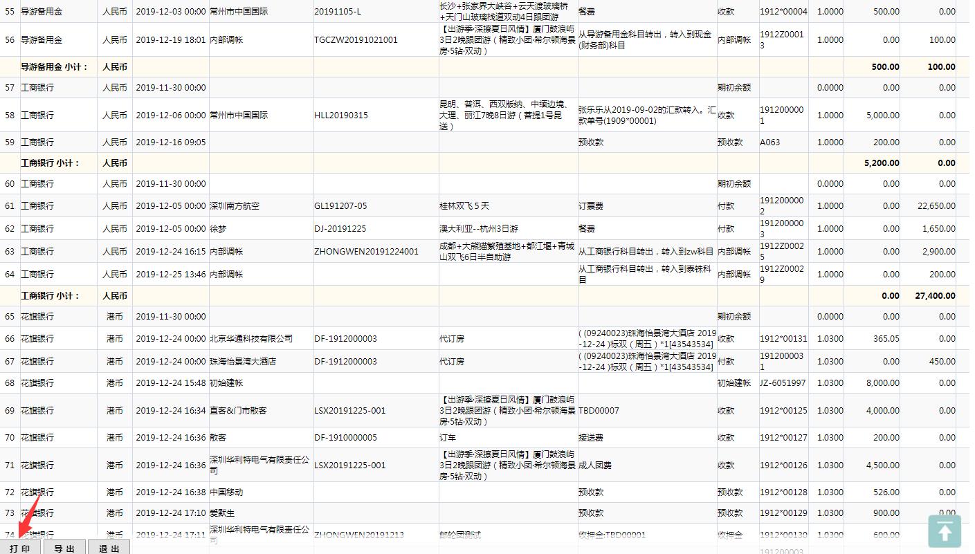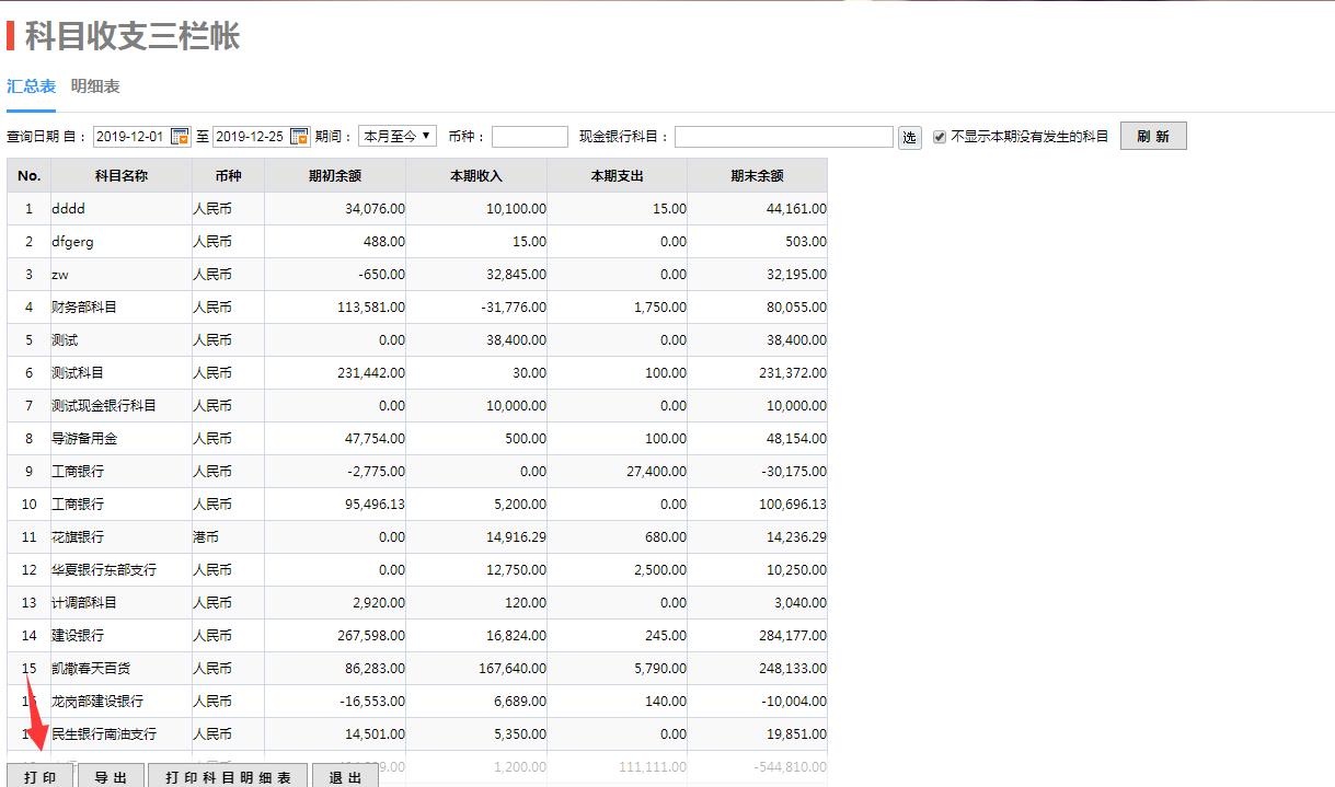 點擊【打印】,可打印當前檢索出來的科目明細記錄。