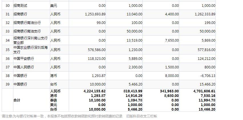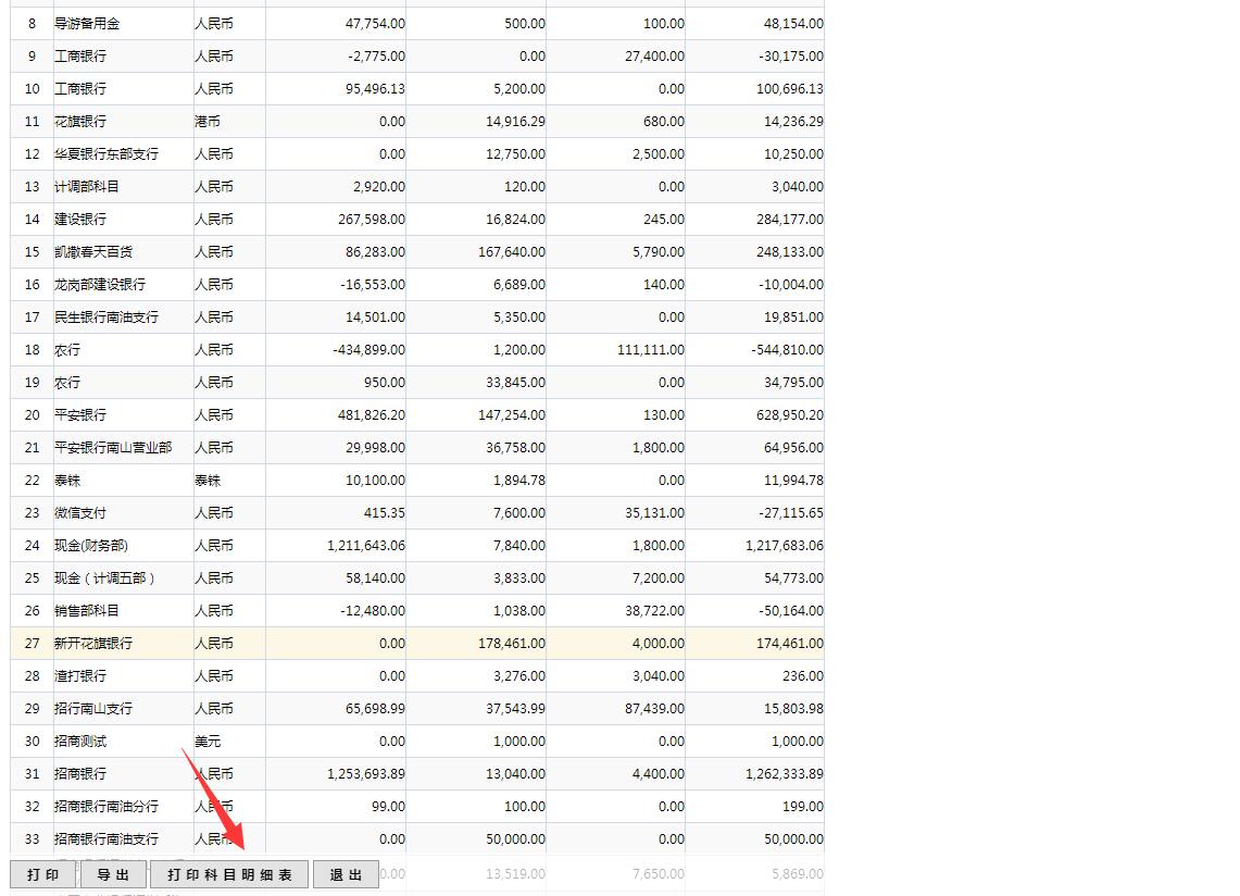 如果想查看某個銀行科目的明細表,選中銀行科目,點擊【打印科目明細表】。