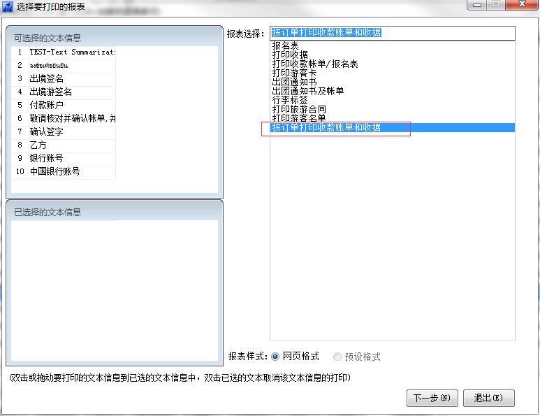 5.選擇已添加7-11收款二維碼的報表模板,報表輸出格式根據(jù)情況而定。