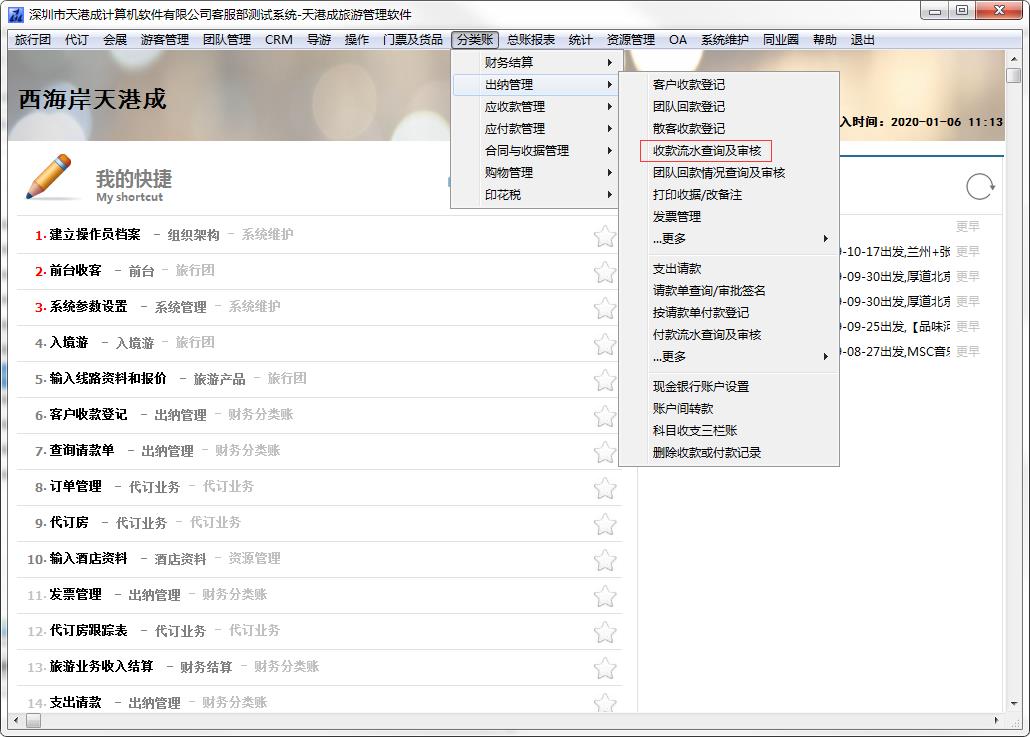 5.收款流水賬查詢及審核中也能查詢到對應(yīng)的收款記錄。