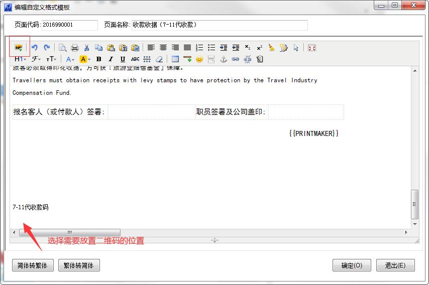 3.選擇需要放置二維碼的位置,點(diǎn)擊左上角的小圖片按鈕。