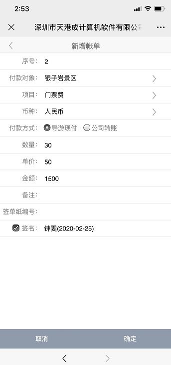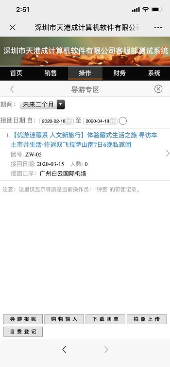 4.導游登錄手機版導游專區進行導游報賬,生成團隊的應付賬款。