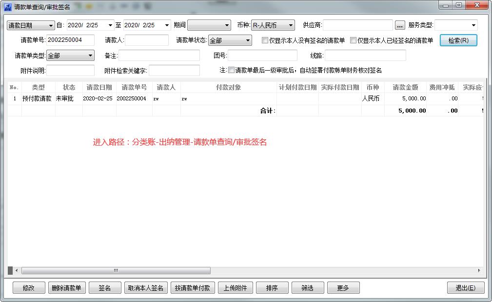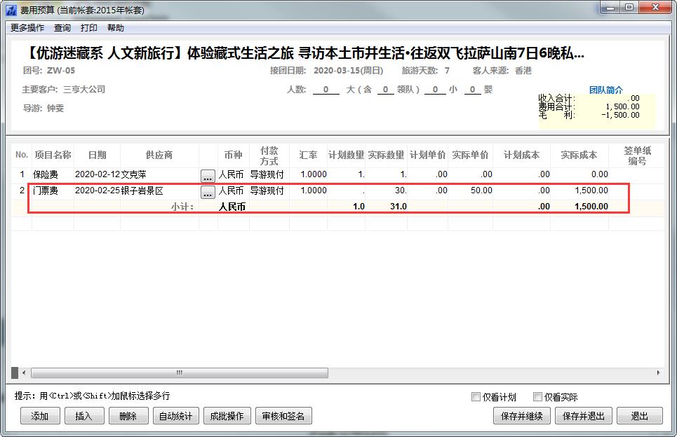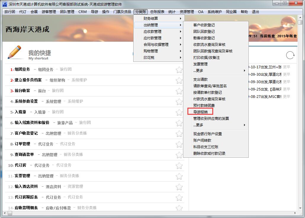 進入路徑:分類賬-出納管理-導游報銷 查看截圖