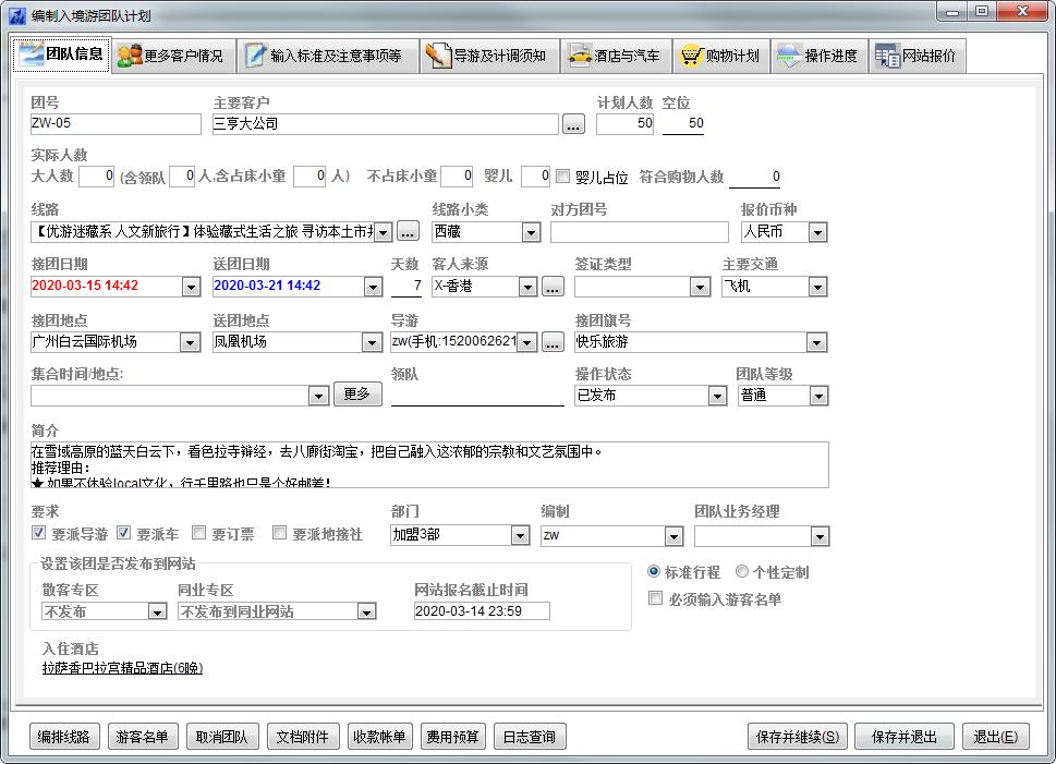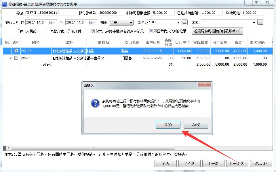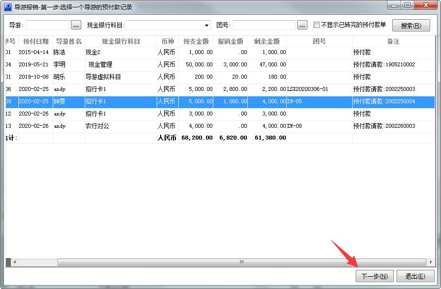 說明:預付款請款時,指定團號表示專款專用;如果不指定,則不限定導游領取的預付款用于哪個團的報銷。