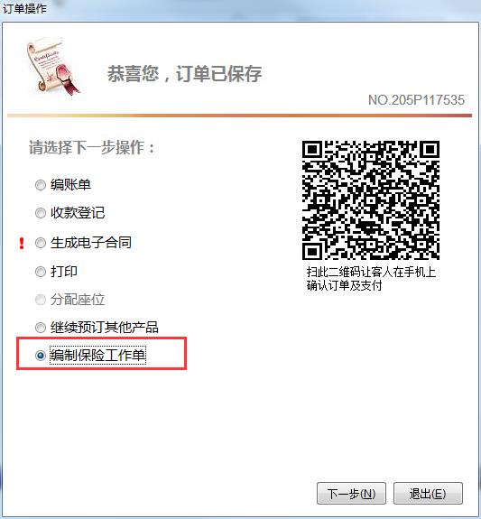 保存后,在彈出的小窗口,直接編制保單在線投保