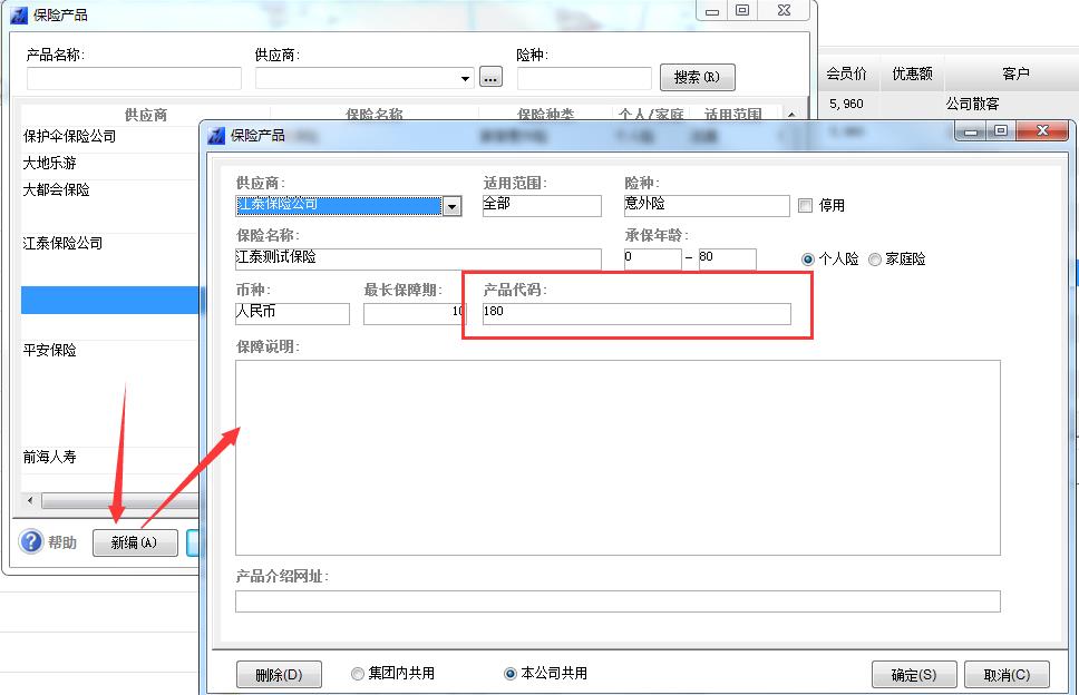直接新編保險產品即可,注意:圖中產品代碼為測試產品,正式產品代碼請向江泰保險公司那邊獲取