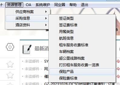 在資源管理-采購信息-保險產品里面設置人保保險的產品