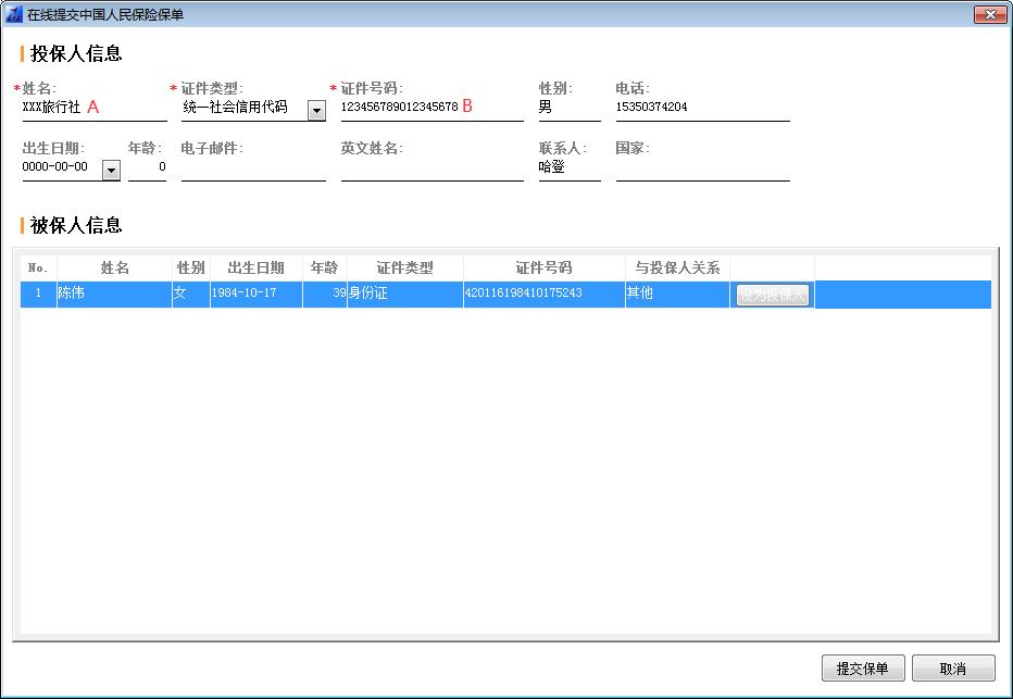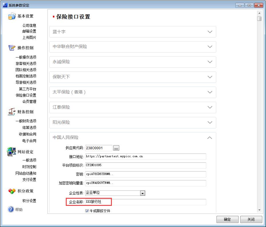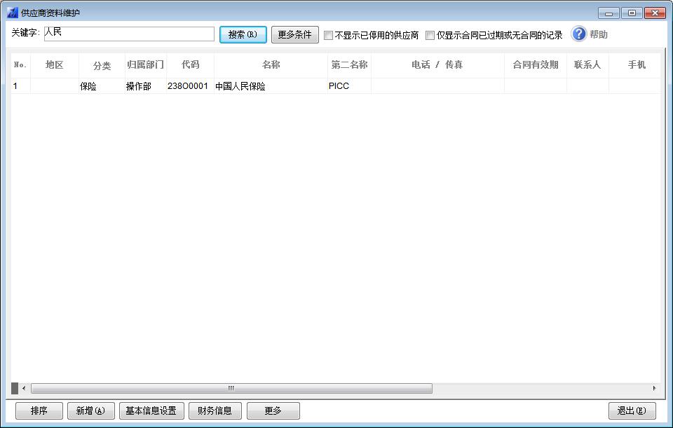 在供應商檔案新增一個“中國人民保險”保險供應商