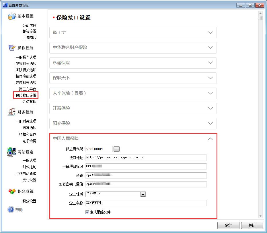按人保提供的相關的參數信息輸入即可。供應商代碼擇選已創建好的“中國人民保險”保險供應商。
