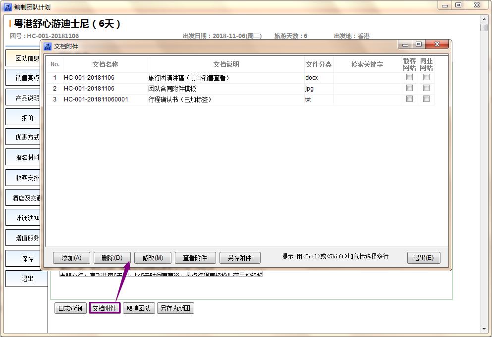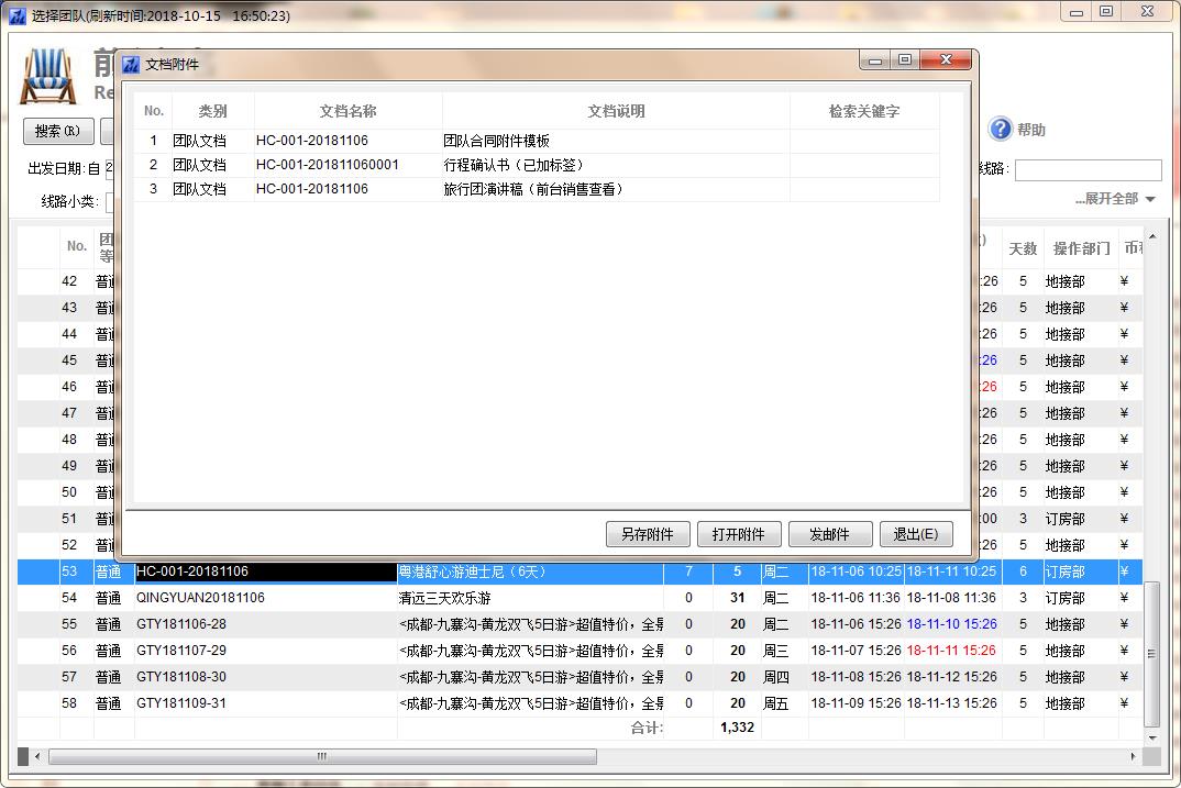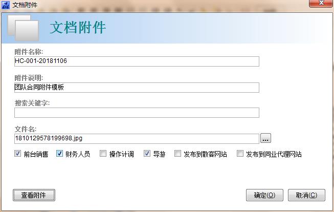 您可以將客戶訂單確認書、供應商的確認件、合同等文件以電子檔的形式存入對應團隊中,可根據業務需要隨時按團查詢該團的往來確認件。