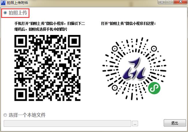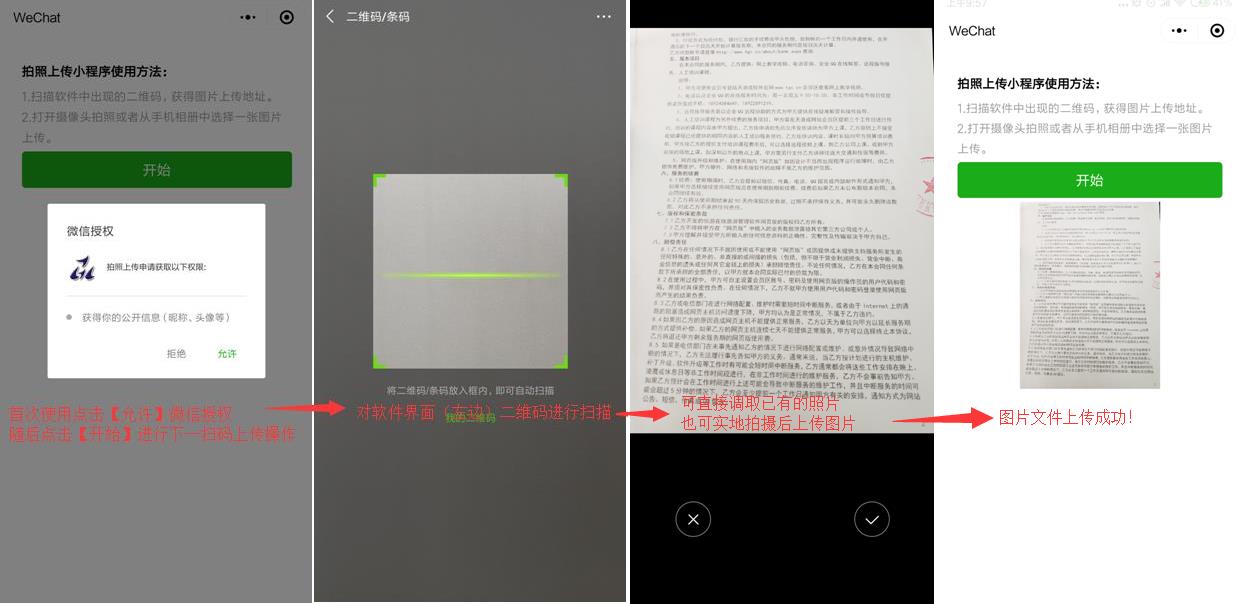 注意:若您首次通過使用拍照上傳小程序來上傳文檔附件,請在微信中先掃描進入微信小程序后再掃描左邊二維碼繼續上傳附件操作。